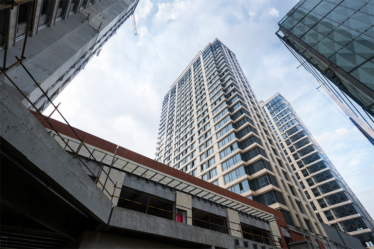 辦公區(qū)沿基地西側(cè)布置,靠近基地西側(cè)的大型景觀公園,使整個建筑群最大程度的享受到城市中央景觀,辦公區(qū)相對獨立,同時底層架空綠化與商業(yè)街區(qū)流線分開,提升了辦公的品質(zhì)。