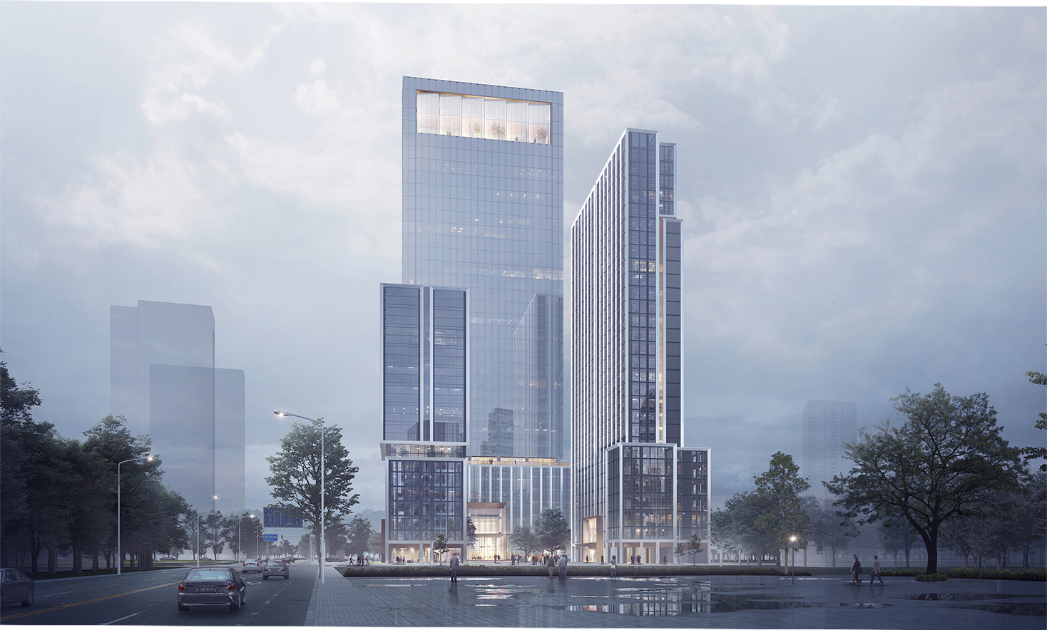 作為未來海西園的標志性最高建筑,從空間上表現(xiàn)為一系列純粹的三維幾何體塊的集合,疊置的體量使得視覺與空間得以多層次地相互滲透與連接,在與環(huán)境相融合的過程中創(chuàng)造出低調的活躍空間。項目規(guī)劃既體現(xiàn)了空間的有機組織,也創(chuàng)造了新的辦公體驗,為演繹現(xiàn)代城市辦公新方式,及未來城市高密度辦公建筑的設計探索提供平臺。立面造型以多個虛實的盒子穿插組合的建筑手法賦予建筑生動和鮮明的個性。