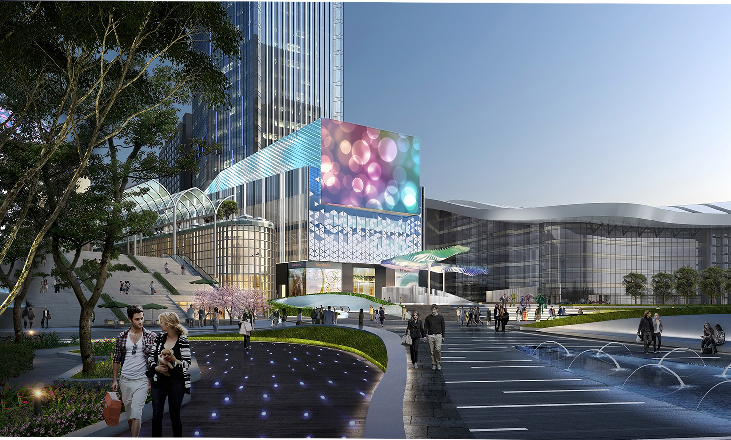 設(shè)置下層廣場(chǎng)與地鐵站無(wú)縫對(duì)接;設(shè)置商業(yè)連廊,放大主要出入口,在主要位置放置 LED 電子屏裝點(diǎn)入口廣場(chǎng);設(shè)計(jì)立體交通以匯聚光谷廣場(chǎng)地上地下以及一期步行街人流;屋頂造型獨(dú)特。設(shè)計(jì)師通過(guò)一系列方式體現(xiàn)“光”的概念,力圖讓每一個(gè)經(jīng)過(guò)光谷廣場(chǎng)的人都能感受其特點(diǎn),從而打造一道全新的城市亮麗風(fēng)景線(xiàn)。