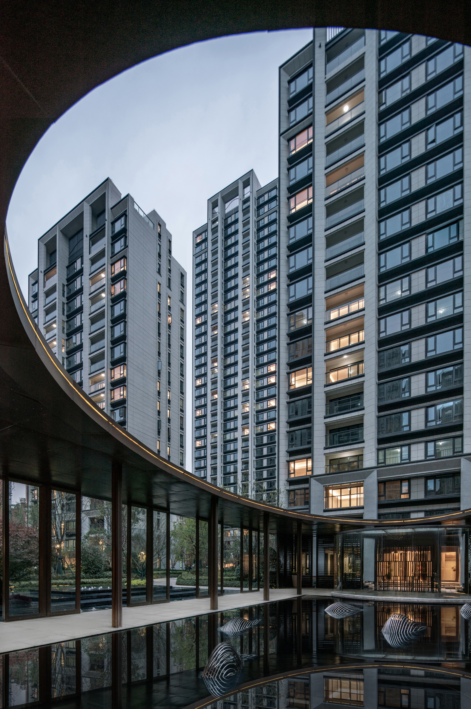 架空層設(shè)計-住宅區(qū)公共空間包括入戶門廳、公共配套等,較為常見的處理方式是以門廳作為室內(nèi)外空間的界限,并通過路徑和空間來營造歸家儀式感。隨著對居住環(huán)境品質(zhì)的更高需求,底層架空的設(shè)計逐漸流行起來。架空后的底層平面自然形成半室外空間用于鄰里交往、景觀營造、社區(qū)活動等多樣化功能,一定程度上解放了用地范圍內(nèi)的土地資源,也革除了建筑內(nèi)外空間界限。但在實際項目操作過程中,常因底層架空的歸屬邊界不清晰,導(dǎo)致成為建筑、室內(nèi)、景觀三不管的盲區(qū)。因此在這個項目中,我們牽頭整合了室內(nèi)和景觀的設(shè)計思路,建筑保證空間的連續(xù)性,地面造景交由景觀延伸,吊頂設(shè)備由室內(nèi)統(tǒng)一設(shè)置,最后圖紙整合,實現(xiàn)一體化的高完成度空間。