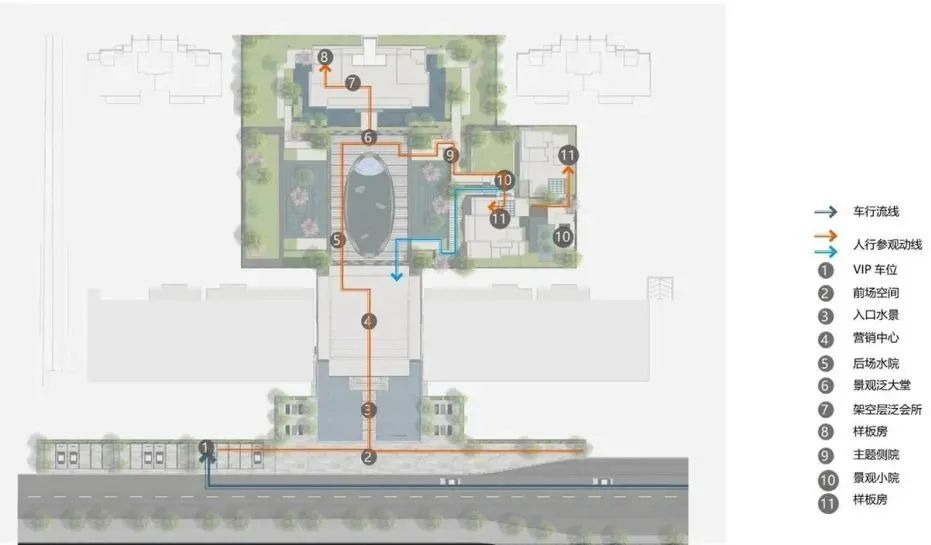 關(guān)于在銷售中心的選址,利用現(xiàn)有物業(yè)經(jīng)營和管理用房來做售樓處,經(jīng)濟(jì)性最好。但問題也隨之而來,在如此局促的場地條件下如何營造出高端售樓處的空間體驗成為該項目示范區(qū)研究課題。而我們認(rèn)為,問題的關(guān)鍵不在于原有空間條件,還是在于設(shè)計能否跳脫傳統(tǒng)的商業(yè)裙房范式,能否將不利因素化解轉(zhuǎn)化。