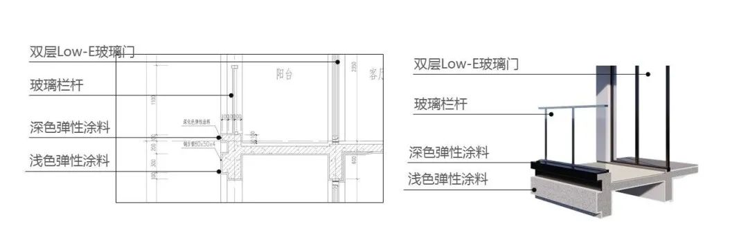 標(biāo)準(zhǔn)斷面設(shè)計中的窗檻墻加玻璃的節(jié)點,陽臺分戶玻璃的設(shè)計研究是提升整個立面觀感的有效投入,同時成本也在可控的范圍內(nèi),團(tuán)隊通過模型及試樣的推敲有效的控制了細(xì)節(jié)的觀感,并以此項目為基準(zhǔn)在后續(xù)的設(shè)計中不斷的迭代優(yōu)化。