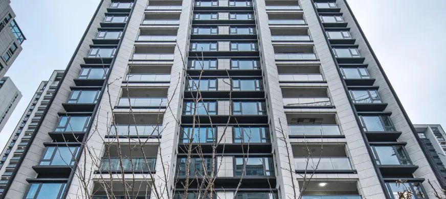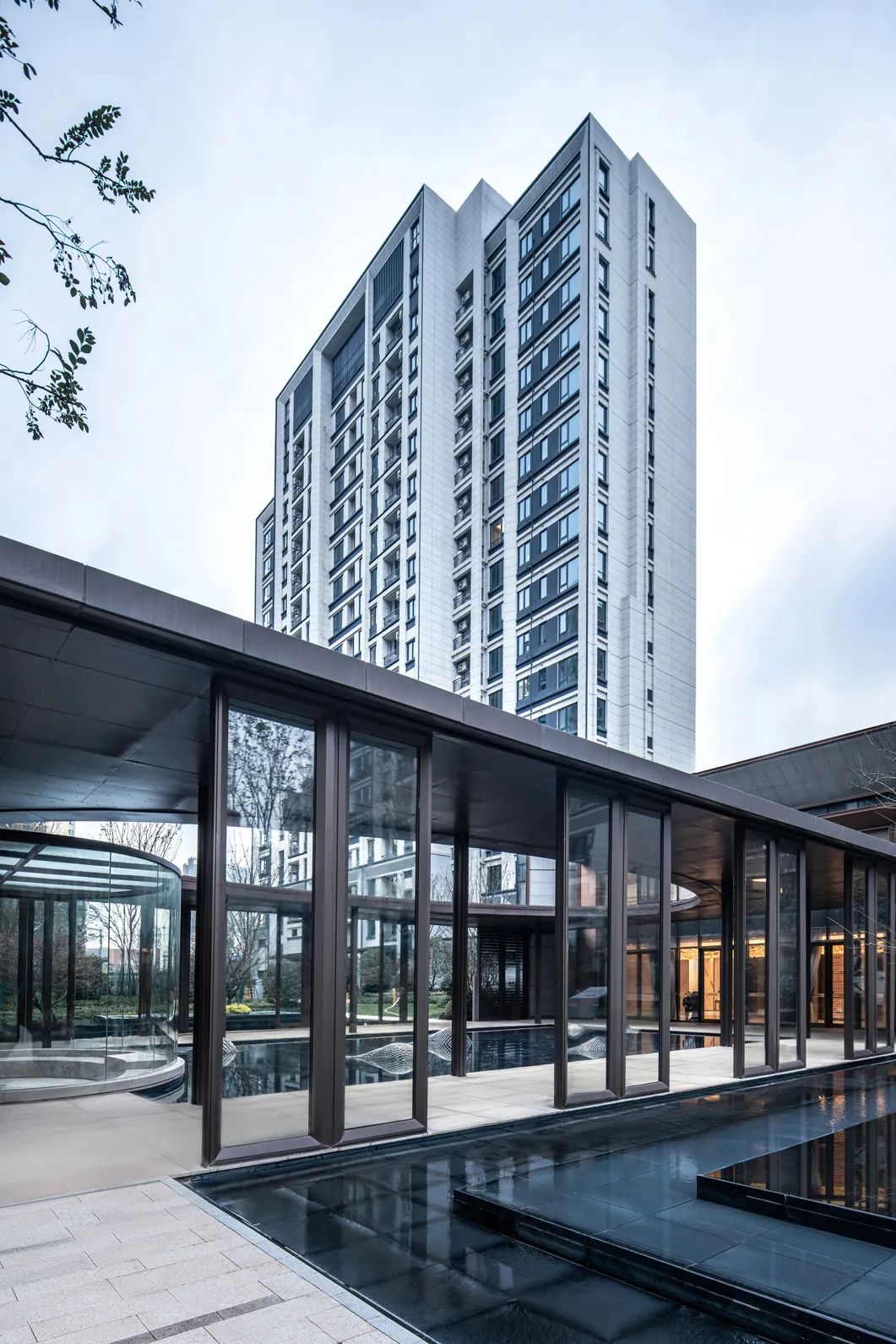 多種材質(zhì)的拼接和精細(xì)化的細(xì)節(jié)處理。采用開放式幕墻體系,石材鋁板幕墻與超白玻相結(jié)合,突顯單元的輕盈現(xiàn)代感。