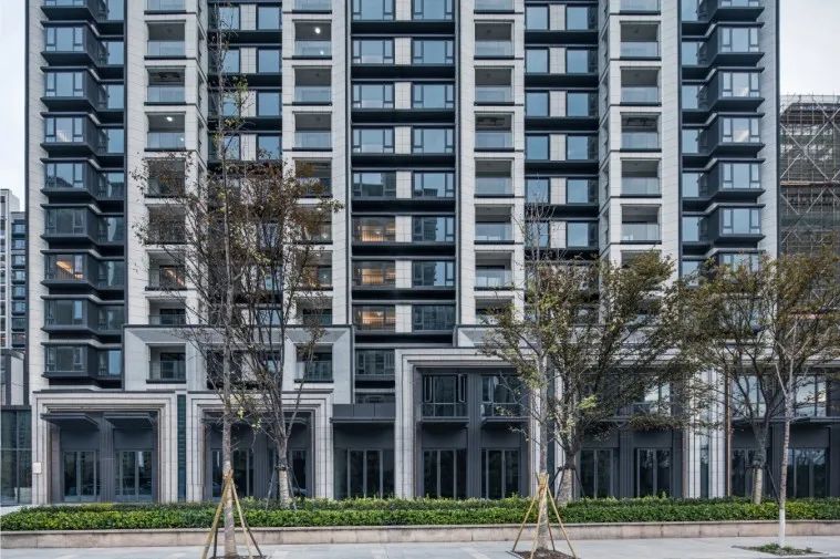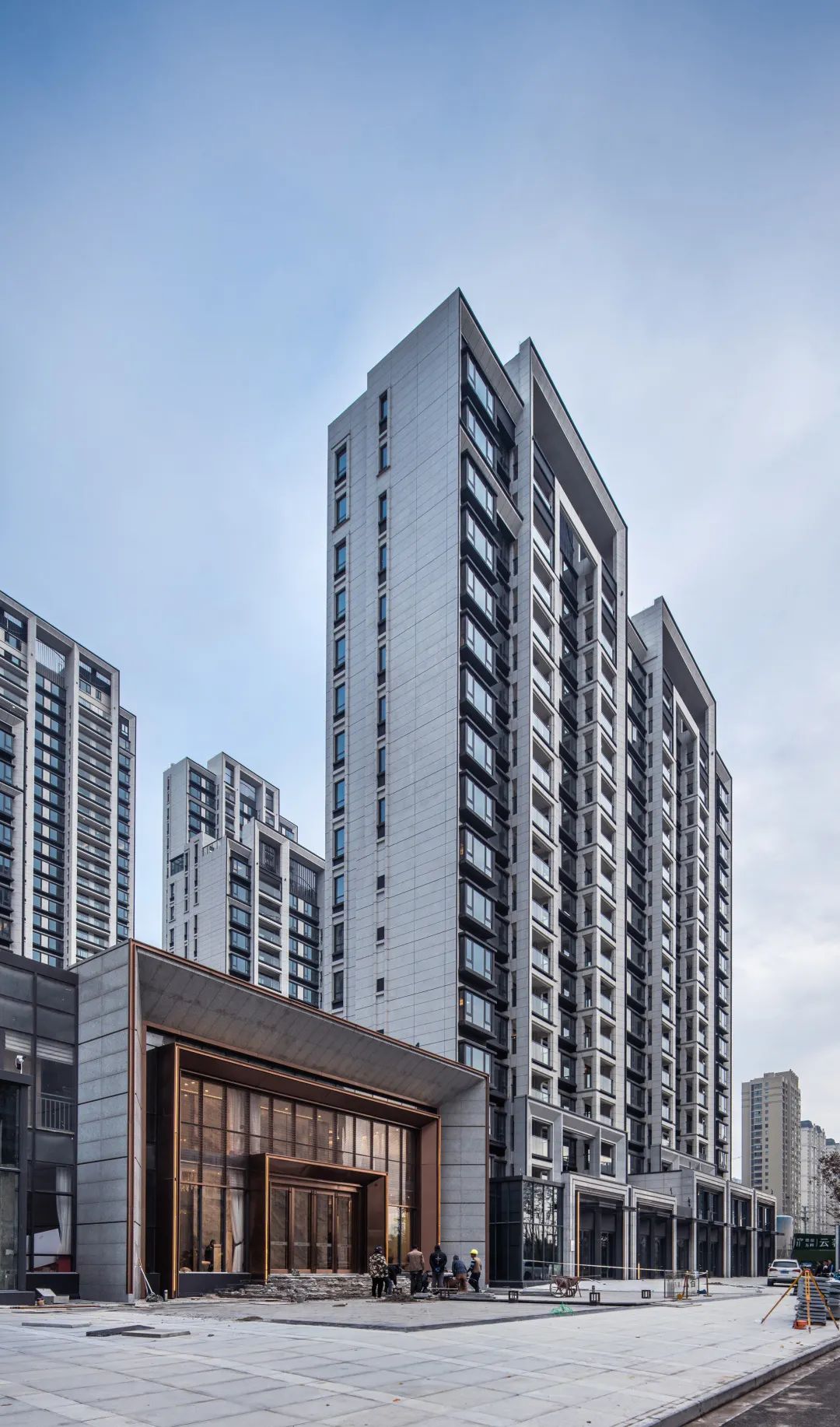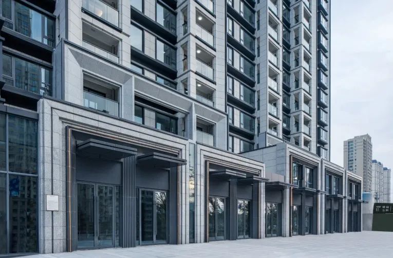 -項目本身受制于成本等因素,大區(qū)立面以土建為主,因此項目中立面的主要線條元素“斜切面”的完成度就成了重要節(jié)點研究對象。我司通過與業(yè)主及幕墻等合作方的多方協(xié)商論證,最終選擇了以成品GRC來取代鋁板幕墻,同時達(dá)到挺拔現(xiàn)代的美感。