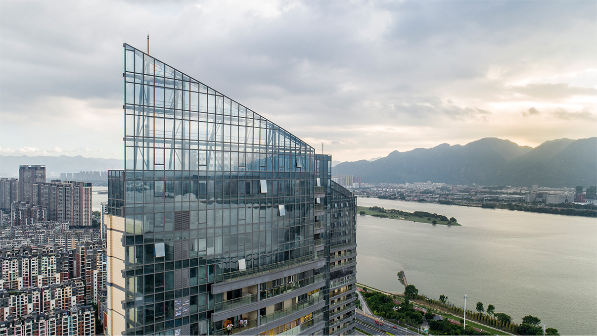 地塊位處橘園洲大橋立交旁,是烏龍江沿線地塊承上啟下的重要節(jié)點。項目從城市設計的角度出發(fā),將4棟高層體量規(guī)整為3棟,向上堆疊,形成130米、140米、150米三棟超高層建筑。建筑外立面采用玻璃結(jié)合陶板的全干掛幕墻系統(tǒng),三角形頂部幕墻的形體設計帶有江畔揚帆的寓意,從建筑表皮及建筑形體兩方面區(qū)別于沿線其他的高層住宅樹立項目的江畔橋頭地標性建筑形象。