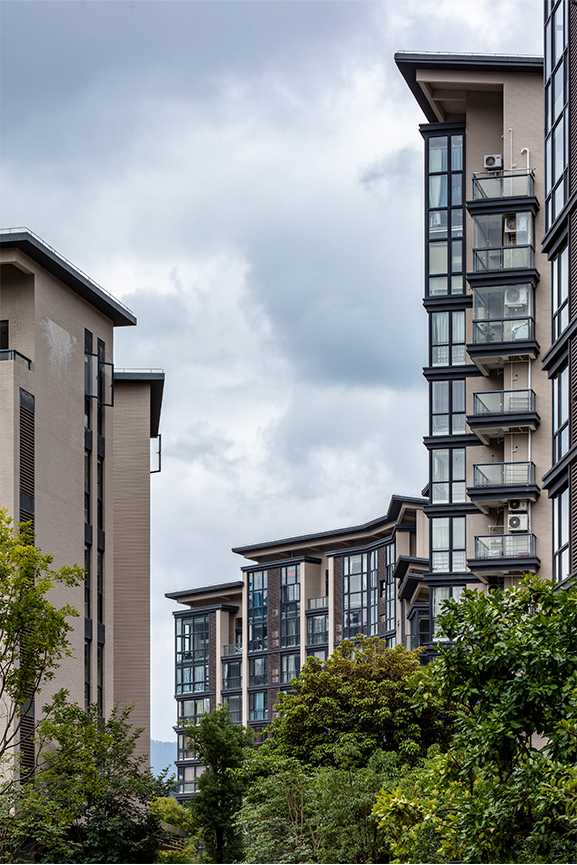 秉承新亞洲建筑風格特點,項目建筑單體形體簡潔大方,縱向關(guān)系非傳統(tǒng)的三段式分割。比例適度的基座內(nèi)收處理,中間形體外擴,凸顯新亞洲風格特點。 建筑群體通過層層的退臺形成起伏的天際線變化與遠處山景呼應。建筑設計突出建筑形體的簡潔明快,同時,加上精致的構(gòu)件加以點綴,體現(xiàn)建筑的優(yōu)雅感與精致感。建筑材料采用磚、木、石、水泥、鋼、玻璃六種材料組合,打造質(zhì)樸、自然的建筑風格,強調(diào)保持材料本色,給建筑帶來了一種自然的美。