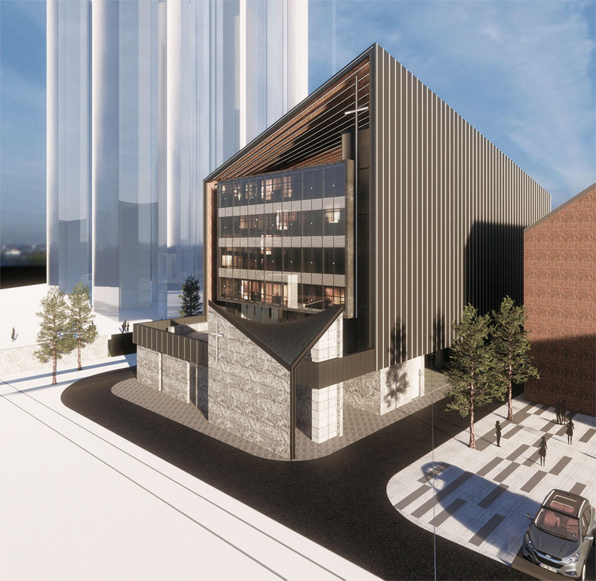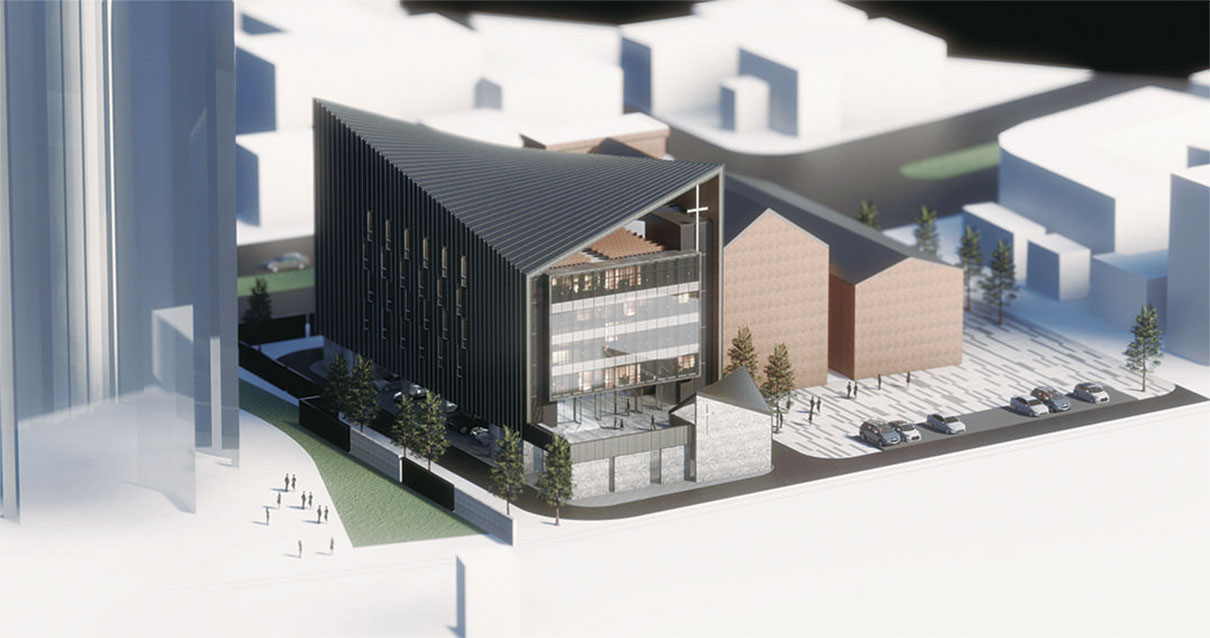 該項(xiàng)目位于福州市臺(tái)江區(qū),毗鄰保留建筑(江濱西大道285號(hào)),閩江沿岸,由于地塊狹長(zhǎng),教堂平面采用了簡(jiǎn)單的矩形,既符合教堂的使用功能,又協(xié)調(diào)了周邊的場(chǎng)地;建筑體量上簡(jiǎn)潔明朗,最大的特點(diǎn)是使用了雙曲面的金屬屋頂, 它讓人感受到了鳥的輕盈和它翱翔時(shí)翅膀的張力,夸張的曲線造型,象征著向天空展開的張力,使教堂的辨識(shí)度大大增加, 單坡的雙曲面屋頂和旁邊的保留建筑屋頂協(xié)調(diào)統(tǒng)一,豐富了沿道路和沿江的城市天際線,建成后將可成為區(qū)域的地標(biāo)性建筑。