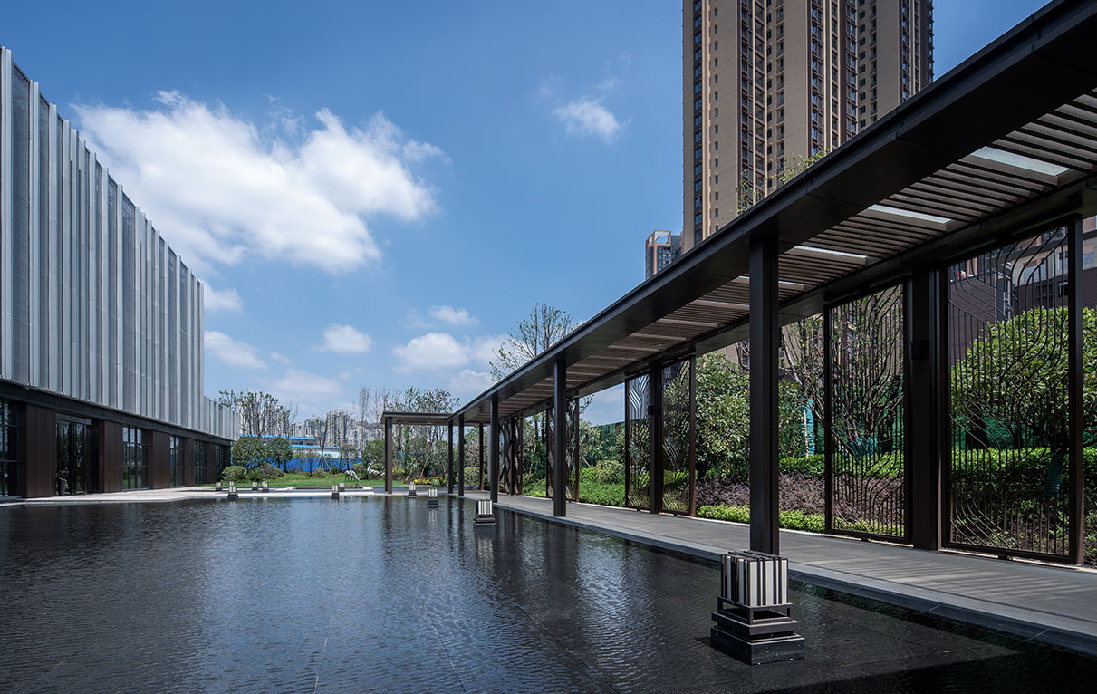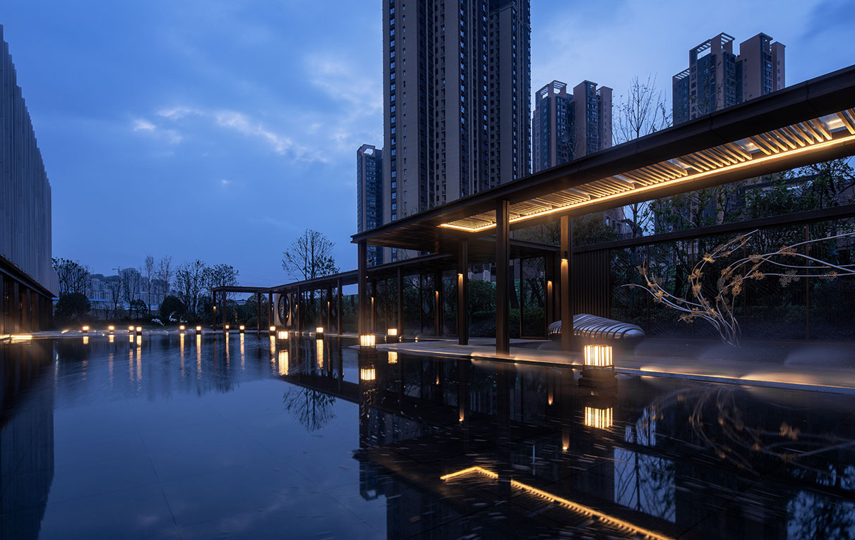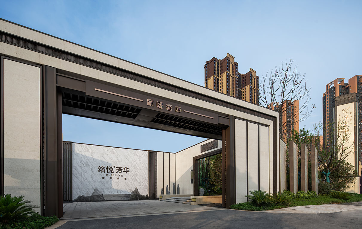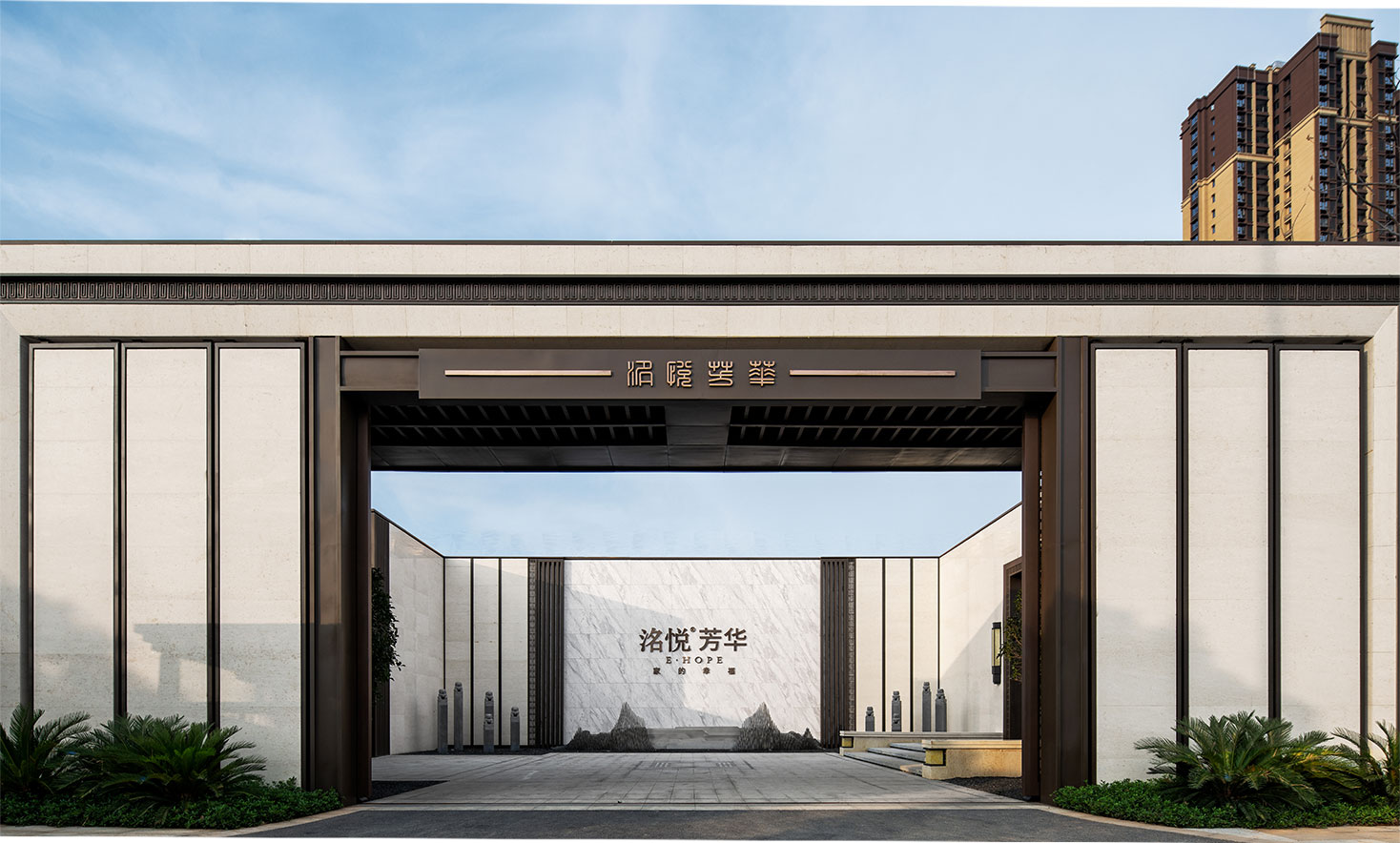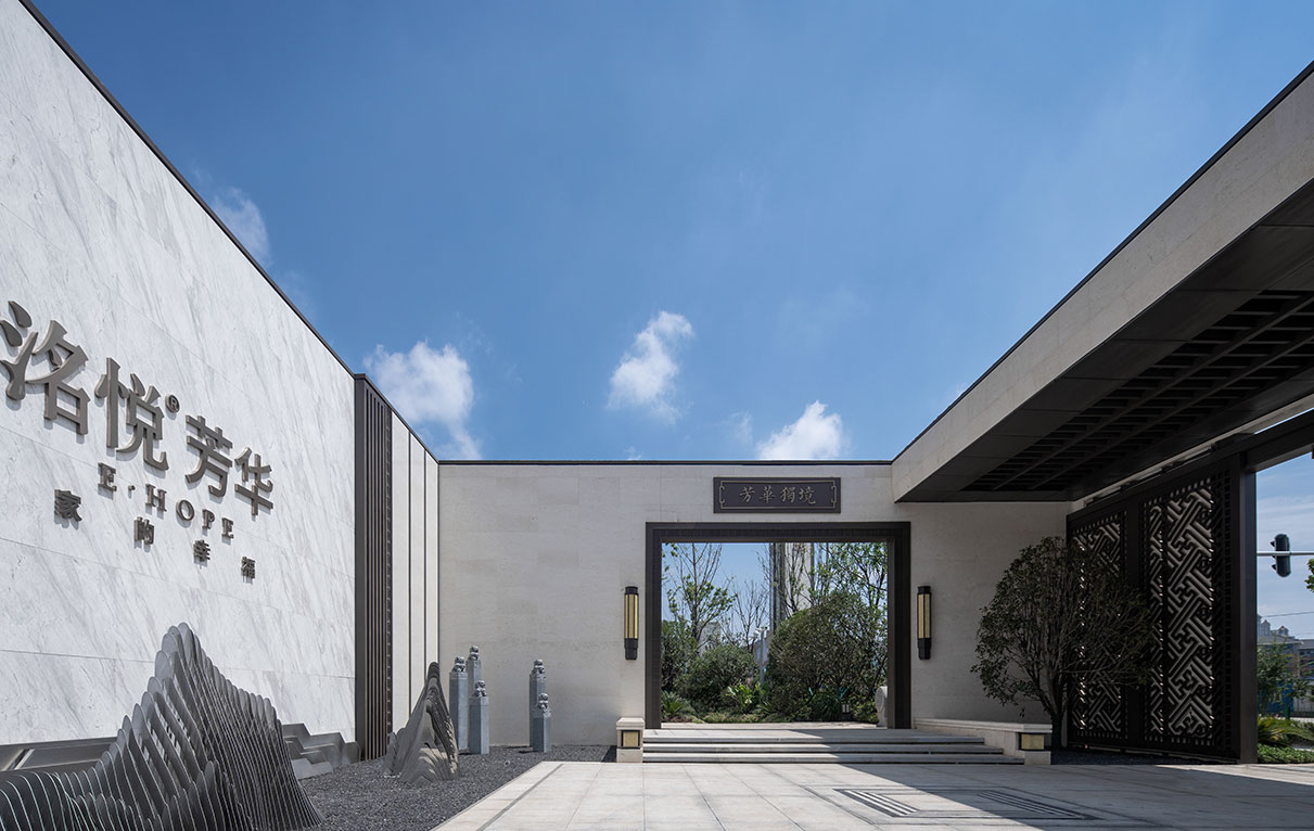 武漢洺悅芳華示范區(qū)位于湖北省武漢市經(jīng)濟技術(shù)開發(fā)區(qū),項目所屬區(qū)域在三環(huán)線以內(nèi)為主城區(qū)。在項目場地中,商業(yè)建筑的南側(cè)與項目場地西南角距離較近,對示范區(qū)入口區(qū)域產(chǎn)生了干擾。因此,對示范區(qū)出入口方式的選擇是本項目的重中之重。另外,在現(xiàn)有場景中如何將“五進”空間融入到示范區(qū)內(nèi)用景觀勾畫出空間的秩序,同時營造出新中式景觀的神韻感,這也是項目的一大挑戰(zhàn)。
