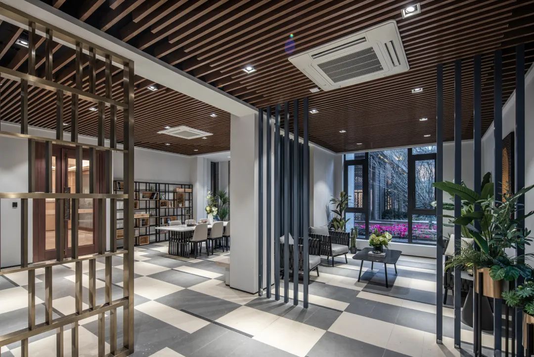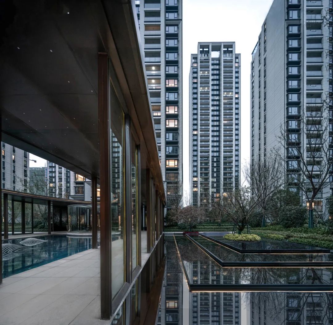 架空層設(shè)計-住宅區(qū)公共空間包括入戶門廳、公共配套等,較為常見的處理方式是以門廳作為室內(nèi)外空間的界限,并通過路徑和空間來營造歸家儀式感。隨著對居住環(huán)境品質(zhì)的更高需求,底層架空的設(shè)計逐漸流行起來。架空后的底層平面自然形成半室外空間用于鄰里交往、景觀營造、社區(qū)活動等多樣化功能,一定程度上解放了用地范圍內(nèi)的土地資源,也革除了建筑內(nèi)外空間界限。但在實際項目操作過程中,常因底層架空的歸屬邊界不清晰,導(dǎo)致成為建筑、室內(nèi)、景觀三不管的盲區(qū)。因此在這個項目中,我們牽頭整合了室內(nèi)和景觀的設(shè)計思路,建筑保證空間的連續(xù)性,地面造景交由景觀延伸,吊頂設(shè)備由室內(nèi)統(tǒng)一設(shè)置,最后圖紙整合,實現(xiàn)一體化的高完成度空間。