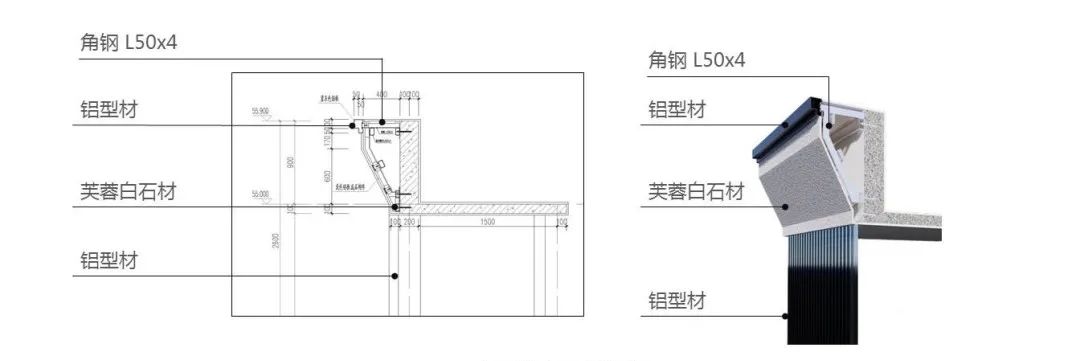 考量到幕墻組件的尺寸拼縫和立面分縫尺寸比例上的協(xié)調(diào),材料的選擇與尺寸大小也經(jīng)過反復(fù)的嘗試與調(diào)整,保證最終效果的實現(xiàn)。從項目的構(gòu)思設(shè)計到建造落實,我們經(jīng)歷了設(shè)計上的反復(fù)嘗試,也在實踐過程中有了新的探索。